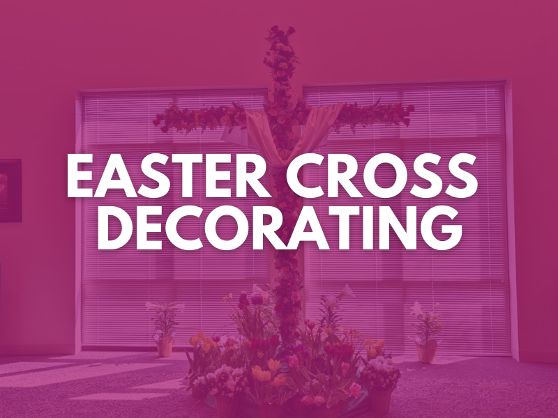 You can help us decorate for Easter Sunday! We are in need of volunteers to help us cover our wooden cross with a variety of Spring flowers. Please bring small clippers with you. Sign up above to help.