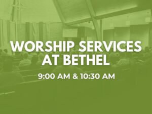 We love people here at Bethel, and we make it our to purpose to make sure you feel welcomed here in our community. Please come dressed as you are – we usually have a mix of jeans all the way up to business casual. We currently have two worship services at 9:00 am & 10:30 am. Our multi-generational worship services last about 1 hour in length, and you can expect a time of music, connection, and a message. You can find out about our current Sermon series here.